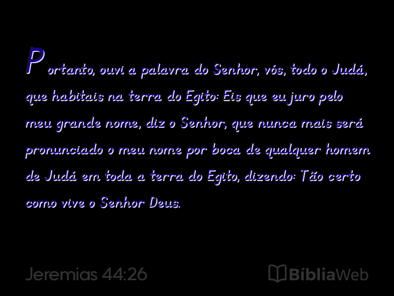 Versículo 26 de Jeremias 44 da Bíblia. Almeida Revisada e Atualizada (1993)