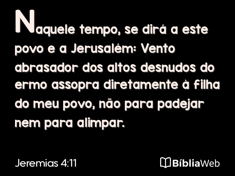 Versículo 11 de Jeremias 4 da Bíblia. Almeida Revisada e Atualizada (1993)