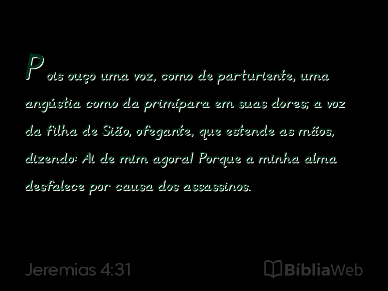 Versículo 31 de Jeremias 4 da Bíblia. Almeida Revisada e Atualizada (1993)