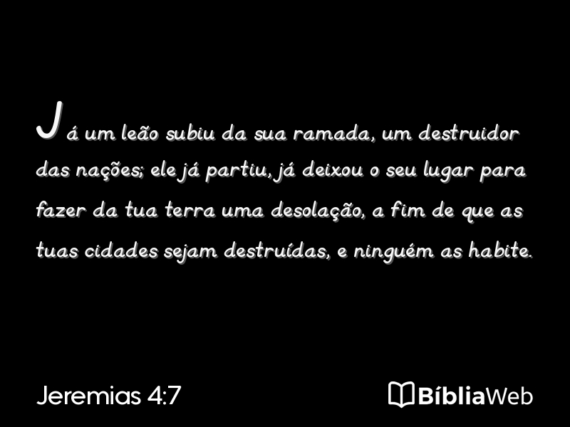 Versículo 7 de Jeremias 4 da Bíblia. Almeida Revisada e Atualizada (1993)