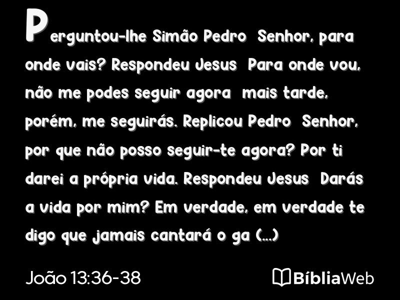 Versículos 36 a 38 de João 13 da Bíblia. Almeida Revisada e Atualizada (1993)