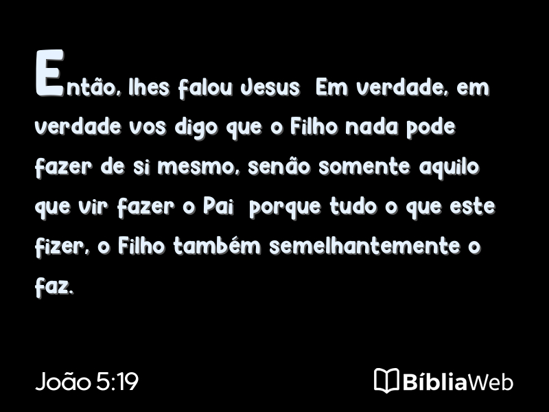 19Então, lhes falou Jesus: Em verdade, em verdade vos digo que o Filho nada pode fazer de si mesmo, senão somente aquilo que vir fazer o Pai; porque tudo o que este fizer, o Filho também semelhantemente o faz.