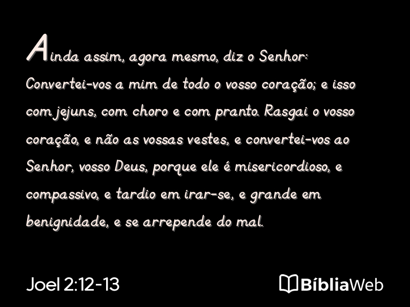 Versículos 12 a 13 de Joel 2 da Bíblia. Almeida Revisada e Atualizada (1993)