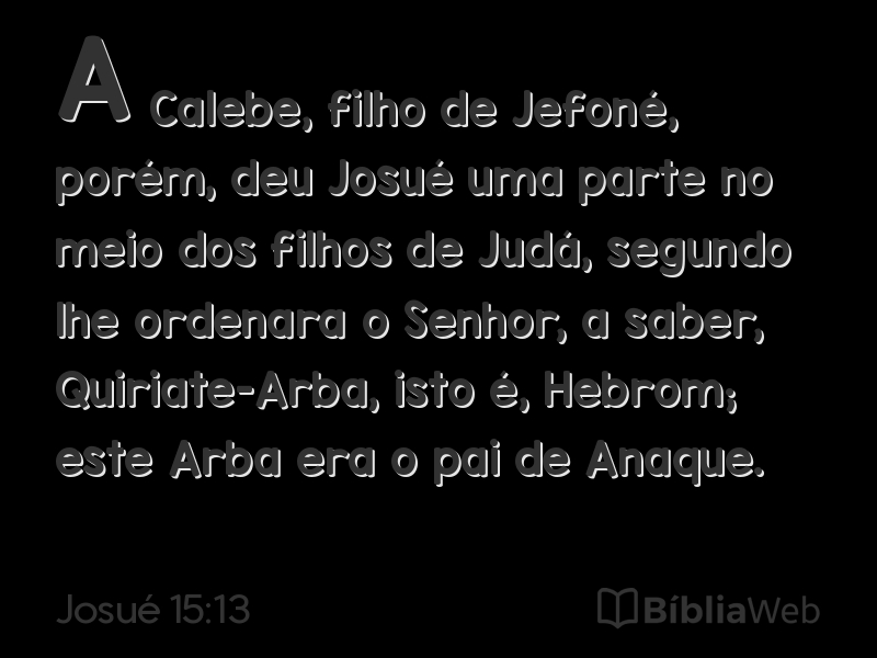 13A Calebe, filho de Jefoné, porém, deu Josué uma parte no meio dos filhos de Judá, segundo lhe ordenara o Senhor, a saber, Quiriate-Arba, isto é, Hebrom; este Arba era o pai de Anaque.