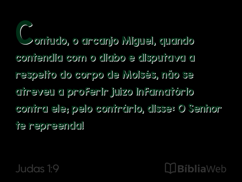 9Contudo, o arcanjo Miguel, quando contendia com o diabo e disputava a respeito do corpo de Moisés, não se atreveu a proferir juízo infamatório contra ele; pelo contrário, disse: O Senhor te repreenda!