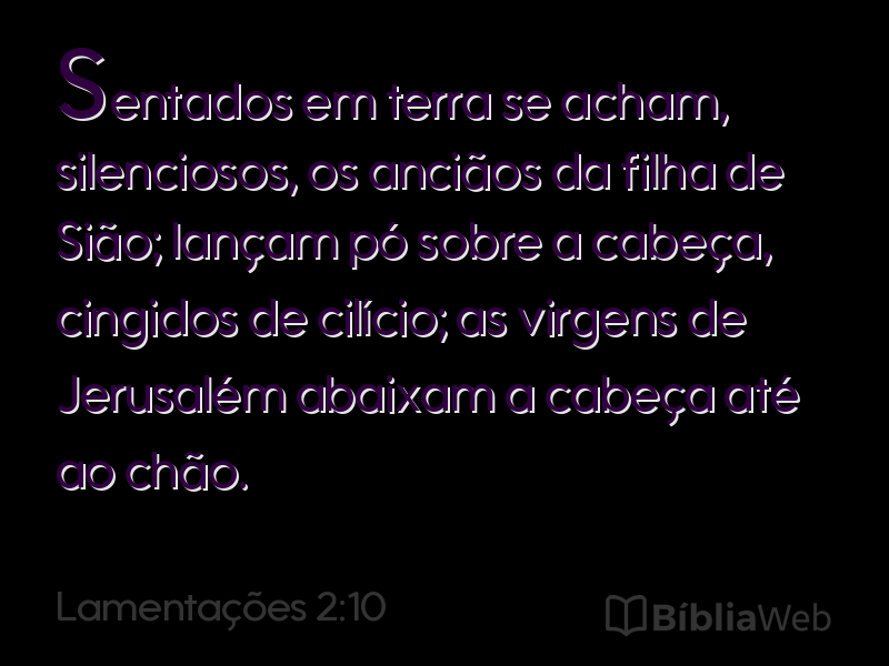 10Sentados em terra se acham, silenciosos, os anciãos da filha de Sião; lançam pó sobre a cabeça, cingidos de cilício; as virgens de Jerusalém abaixam a cabeça até ao chão.