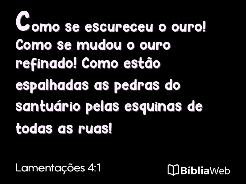 Versículo 1 de Lamentações 4 da Bíblia. Almeida Revisada e Atualizada (1993)