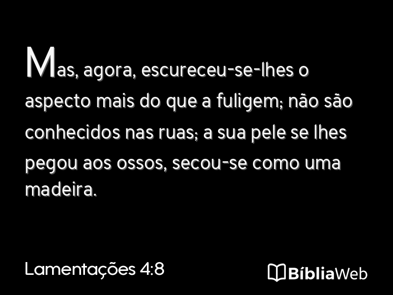 Versículo 8 de Lamentações 4 da Bíblia. Almeida Revisada e Atualizada (1993)