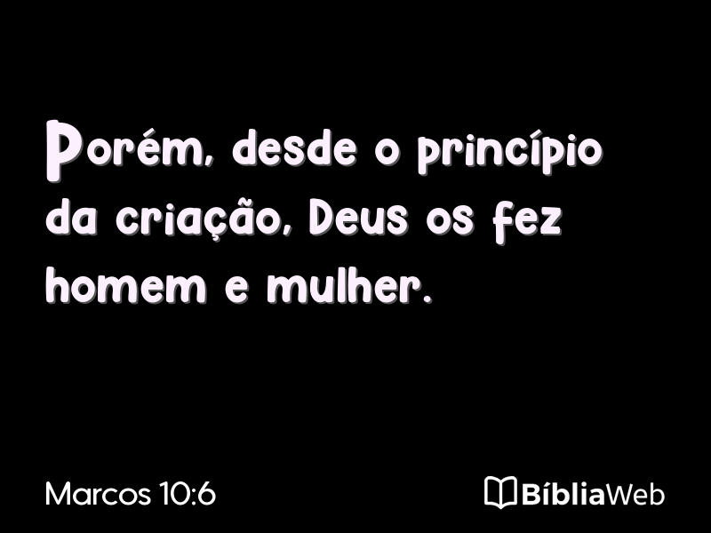 Versículo 6 de Marcos 10 da Bíblia. Almeida Revisada e Atualizada (1993)