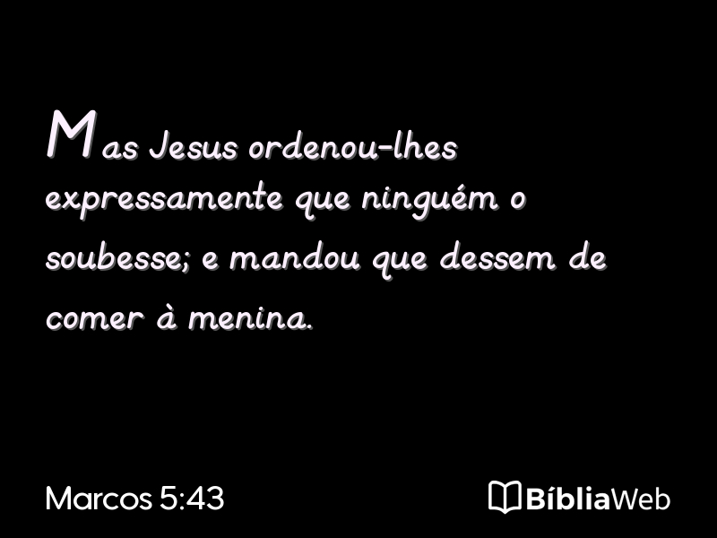 Versículo 43 de Marcos 5 da Bíblia. Almeida Revisada e Atualizada (1993)