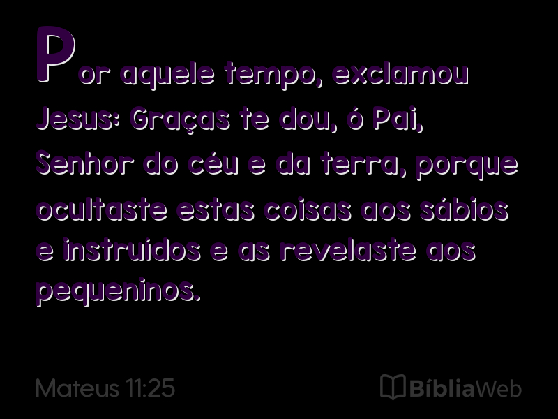 25Por aquele tempo, exclamou Jesus: Graças te dou, ó Pai, Senhor do céu e da terra, porque ocultaste estas coisas aos sábios e instruídos e as revelaste aos pequeninos.