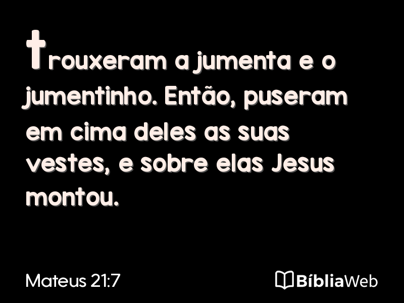 Versículo 7 de Mateus 21 da Bíblia. Almeida Revisada e Atualizada (1993)