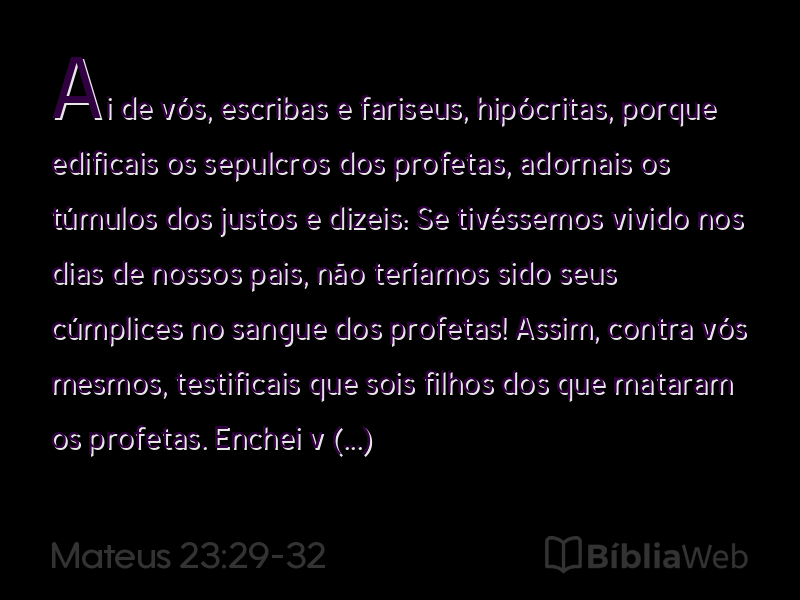 Versículos 29 a 32 de Mateus 23 da Bíblia. Almeida Revisada e Atualizada (1993)