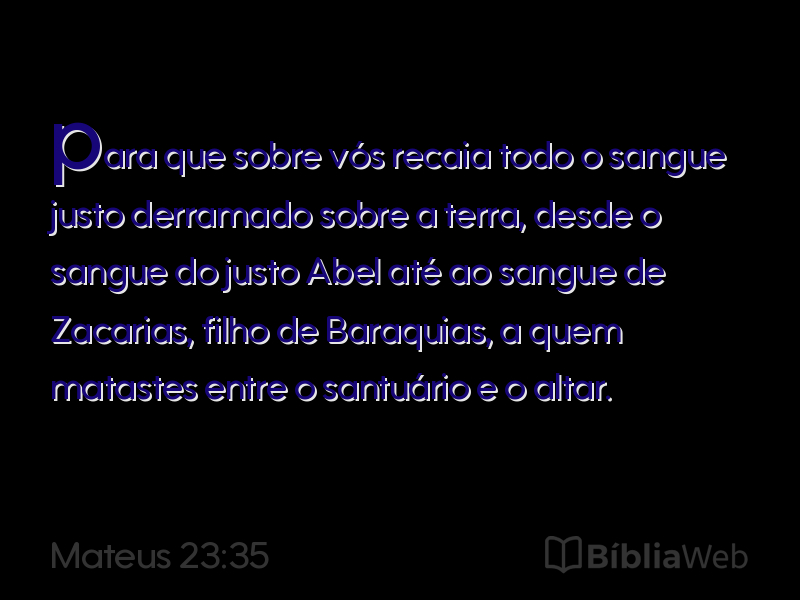 35para que sobre vós recaia todo o sangue justo derramado sobre a terra, desde o sangue do justo Abelaté ao sangue de Zacarias,filho de Baraquias, a quem matastes entre o santuário e o altar.