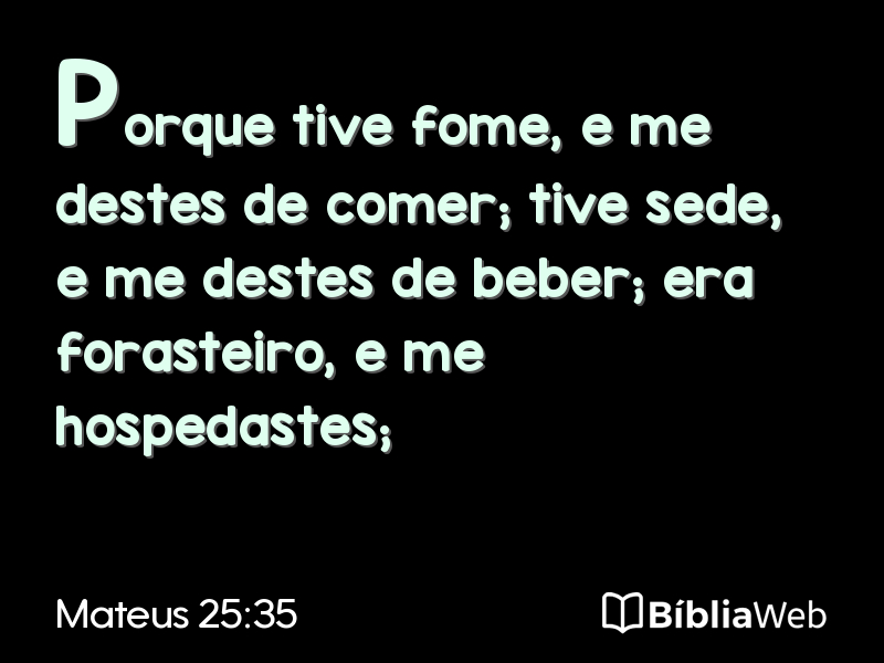 Versículo 35 de Mateus 25 da Bíblia. Almeida Revisada e Atualizada (1993)
