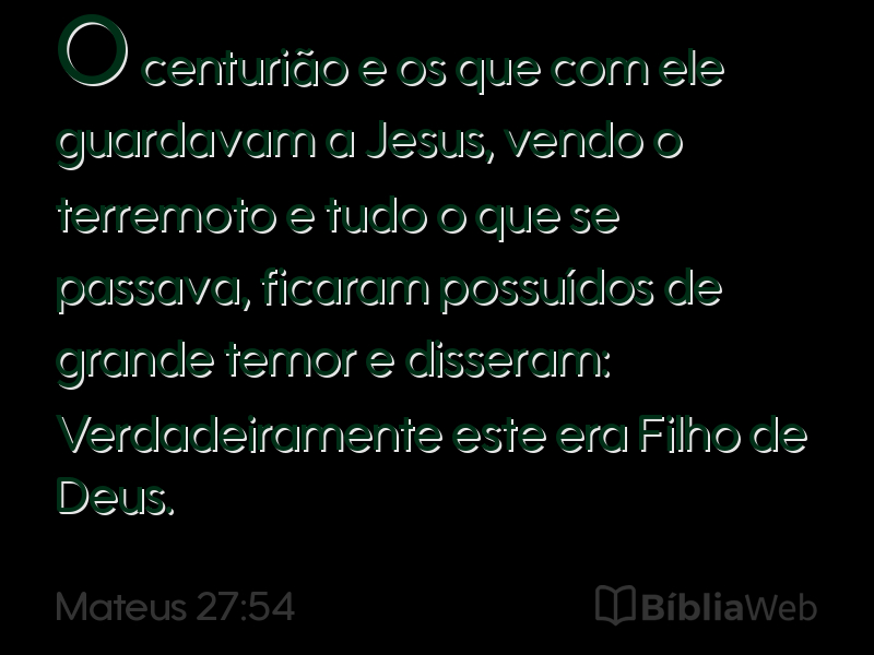 54O centurião e os que com ele guardavam a Jesus, vendo o terremoto e tudo o que se passava, ficaram possuídos de grande temor e disseram: Verdadeiramente este era Filho de Deus.