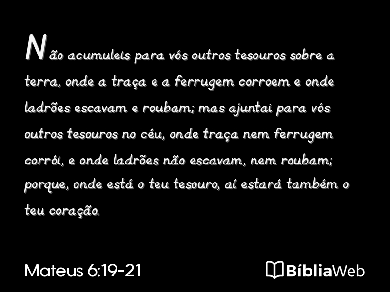 Versículos 19 a 21 de Mateus 6 da Bíblia. Almeida Revisada e Atualizada (1993)
