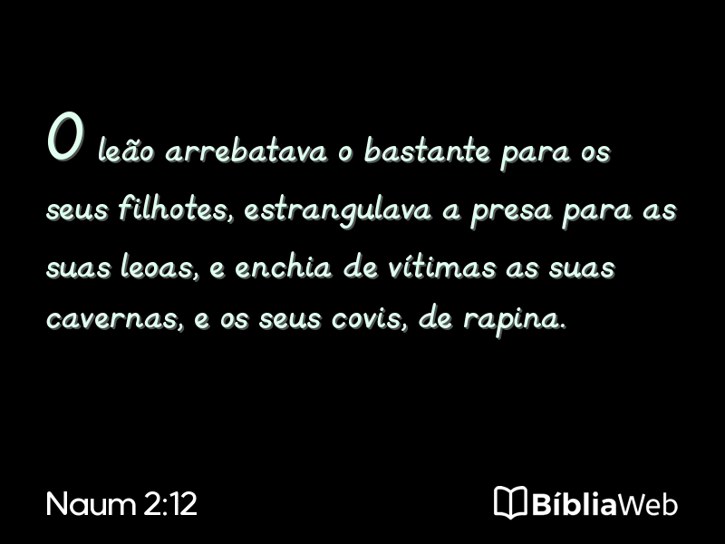 Versículo 12 de Naum 2 da Bíblia. Almeida Revisada e Atualizada (1993)