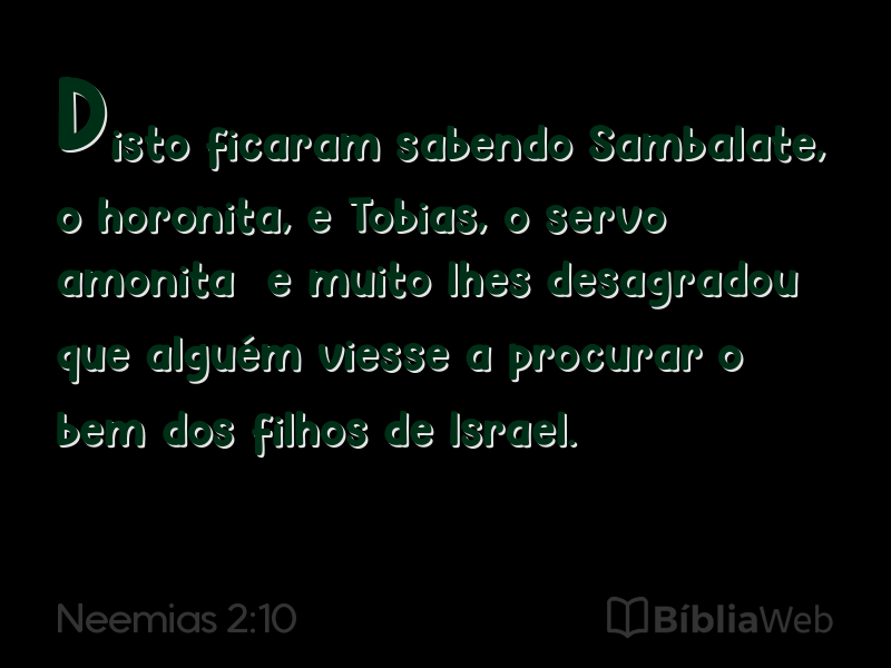 Versículo 10 de Neemias 2 da Bíblia. Almeida Revisada e Atualizada (1993)