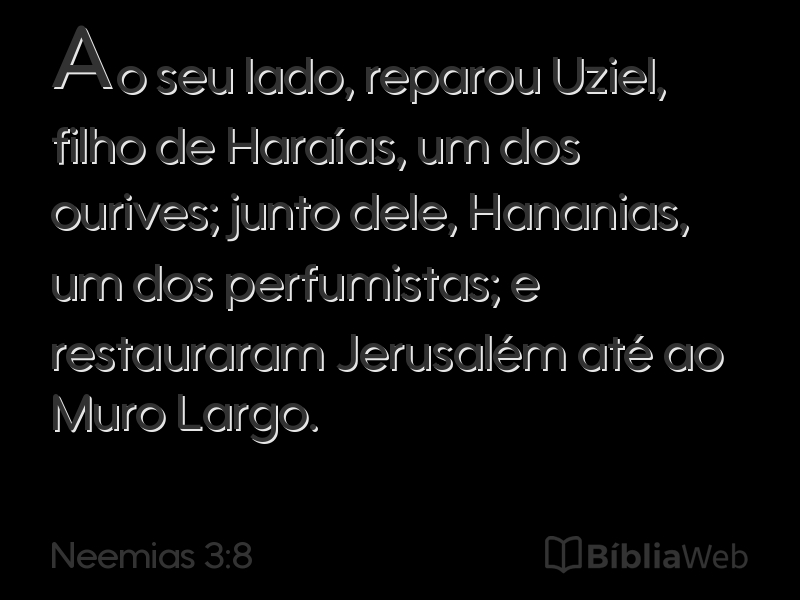 Versículo 8 de Neemias 3 da Bíblia. Almeida Revisada e Atualizada (1993)