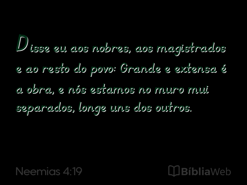 Versículo 19 de Neemias 4 da Bíblia. Almeida Revisada e Atualizada (1993)