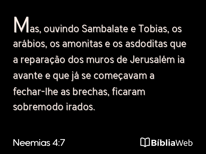 Versículo 7 de Neemias 4 da Bíblia. Almeida Revisada e Atualizada (1993)