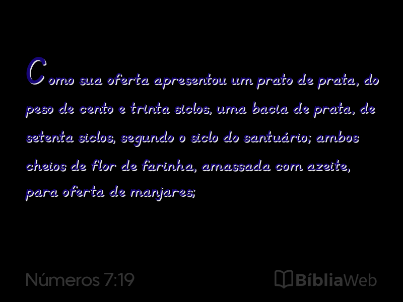 Versículo 19 de Números 7 da Bíblia. Almeida Revisada e Atualizada (1993)