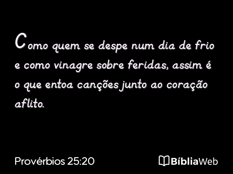 Versículo 20 de Provérbios 25 da Bíblia. Almeida Revisada e Atualizada (1993)