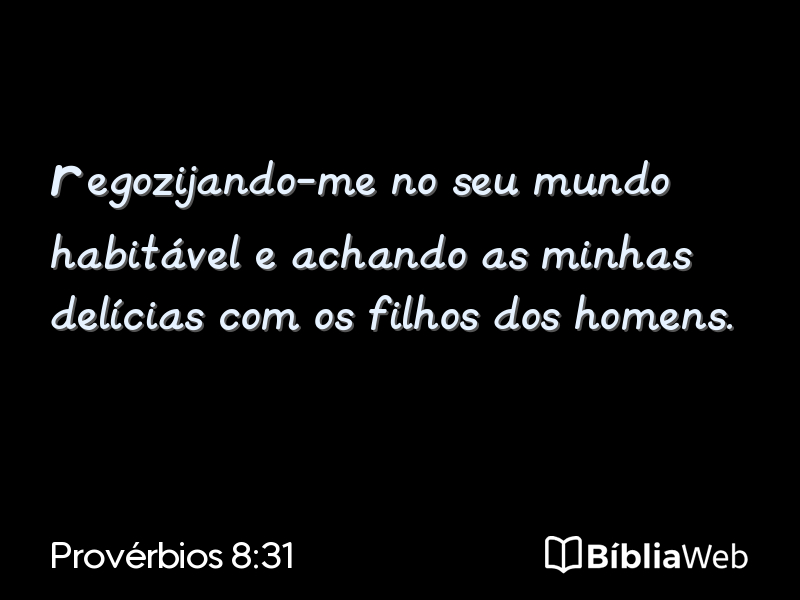Versículo 31 de Provérbios 8 da Bíblia. Almeida Revisada e Atualizada (1993)