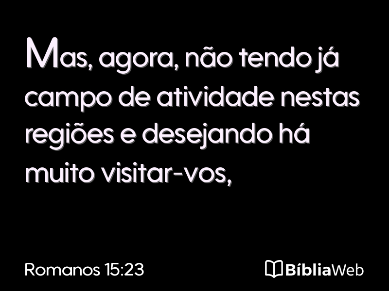 Versículo 23 de Romanos 15 da Bíblia. Almeida Revisada e Atualizada (1993)
