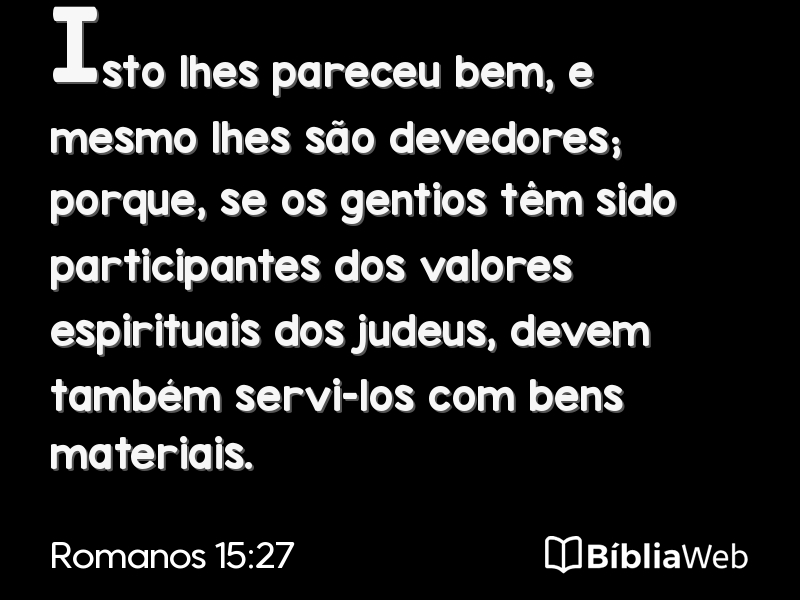 27Isto lhes pareceu bem, e mesmo lhes são devedores; porque, se os gentios têm sido participantes dos valores espirituais dos judeus, devem também servi-los com bens materiais.