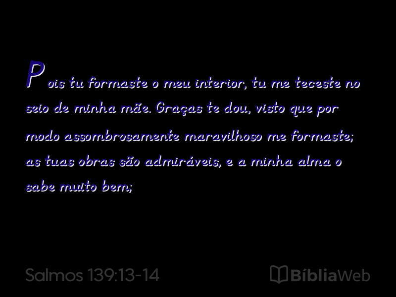 Versículos 13 a 14 de Salmos 139 da Bíblia. Almeida Revisada e Atualizada (1993)