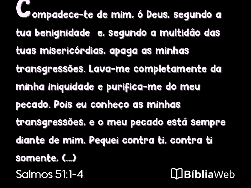 Versículos 1 a 4 de Salmos 51 da Bíblia. Almeida Revisada e Atualizada (1993)