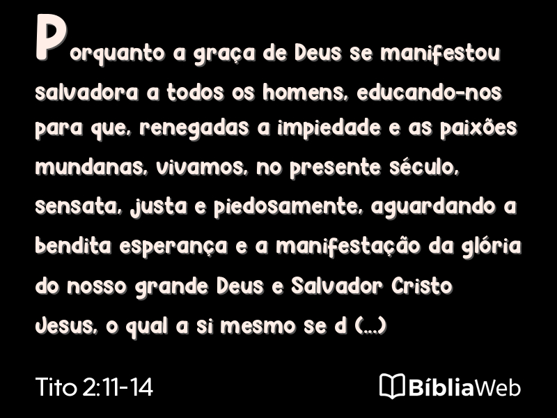 Versículos 11 a 14 de Tito 2 da Bíblia. Almeida Revisada e Atualizada (1993)