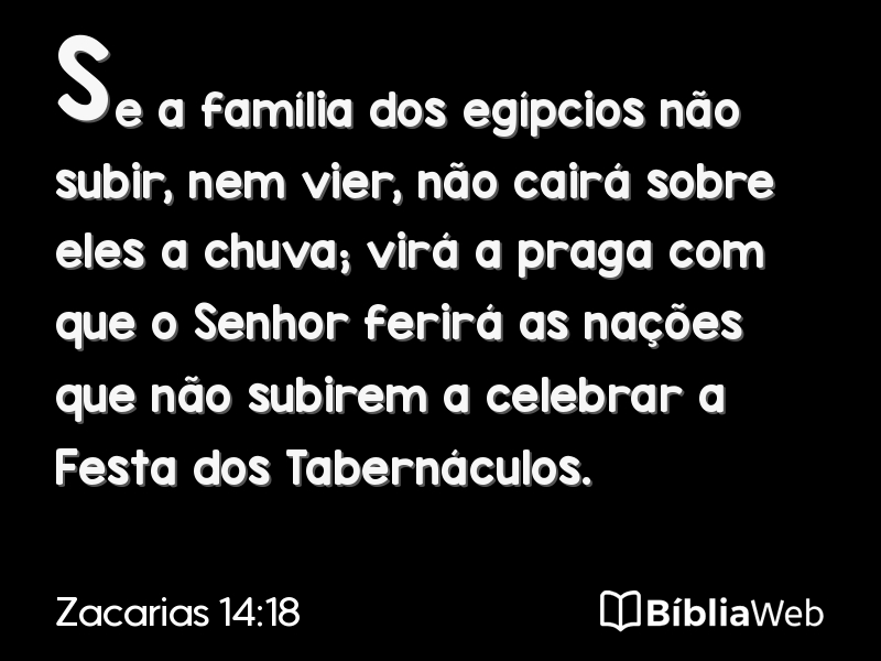 18Se a família dos egípcios não subir, nem vier, não cairá sobre eles a chuva; virá a praga com que o Senhor ferirá as nações que não subirem a celebrar a Festa dos Tabernáculos.