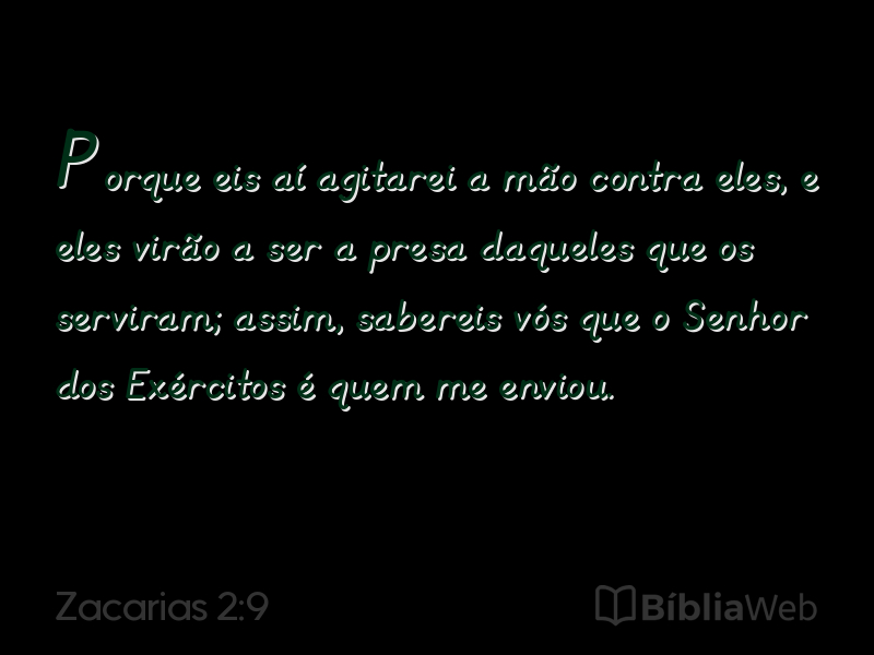 Versículo 9 de Zacarias 2 da Bíblia. Almeida Revisada e Atualizada (1993)